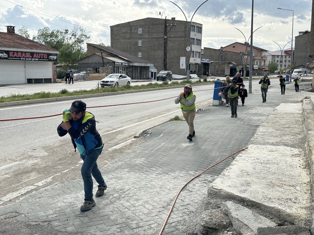 Eski hatların yerine yeni hatları döşemek için fiber optik kablosunu sırtına alan ekipler, 2 kilometre taşıyarak erişimin kolay olmasını sağladılar.