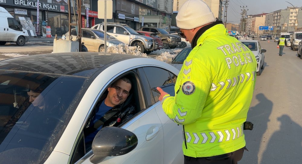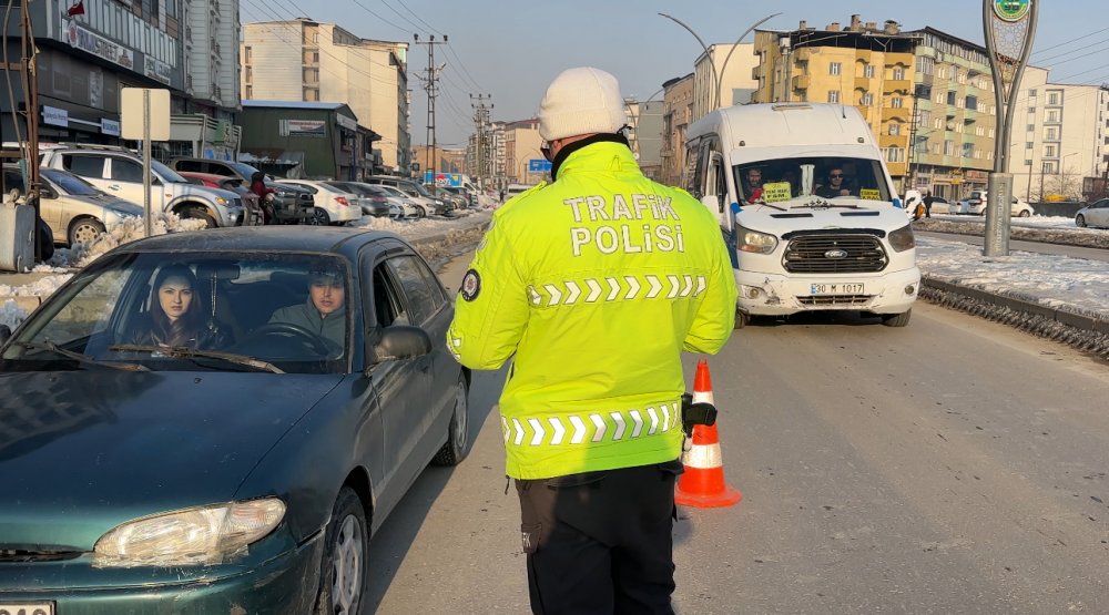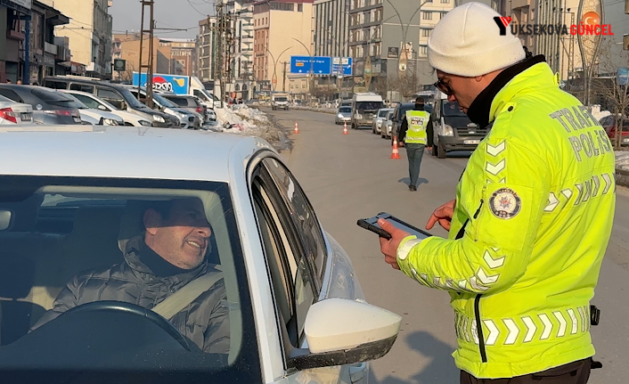Yüksekova ilçesinde trafik polisleri tarafından emniyet kemeri denetimi yapıldı.