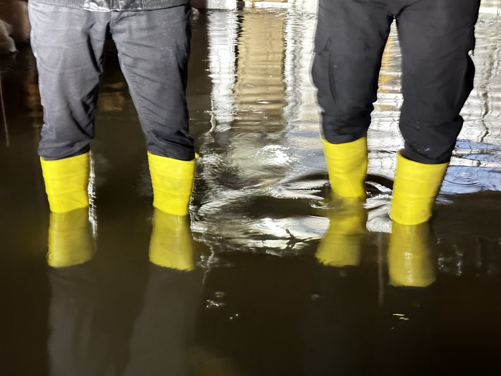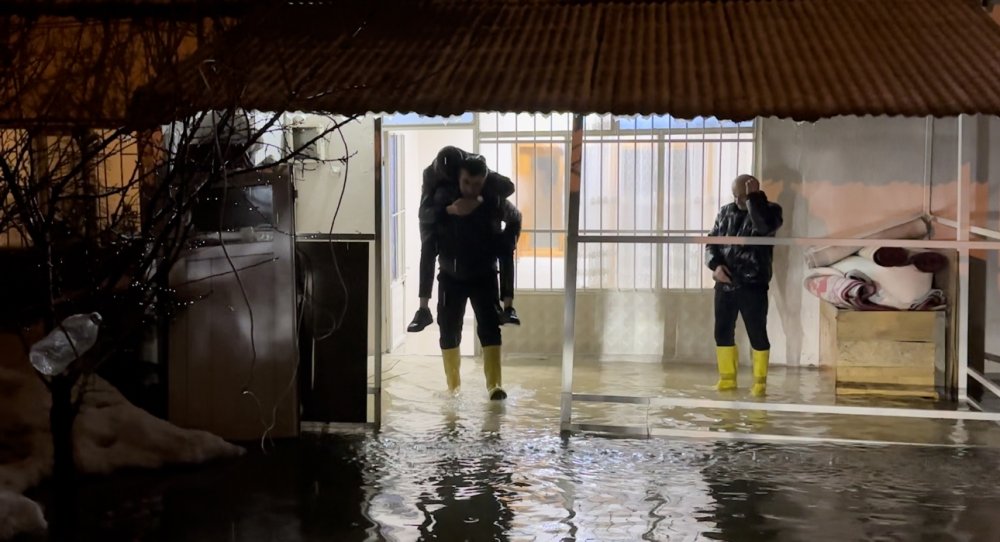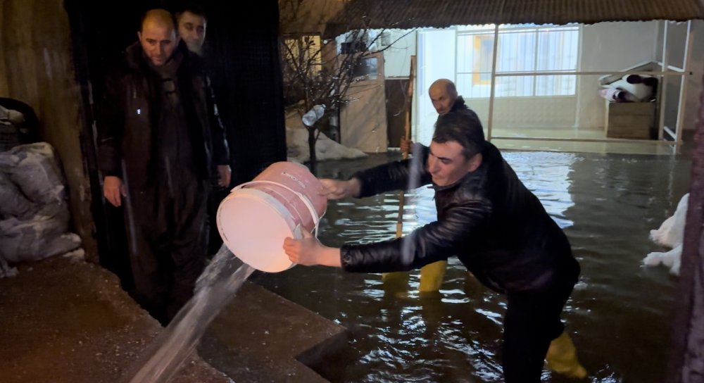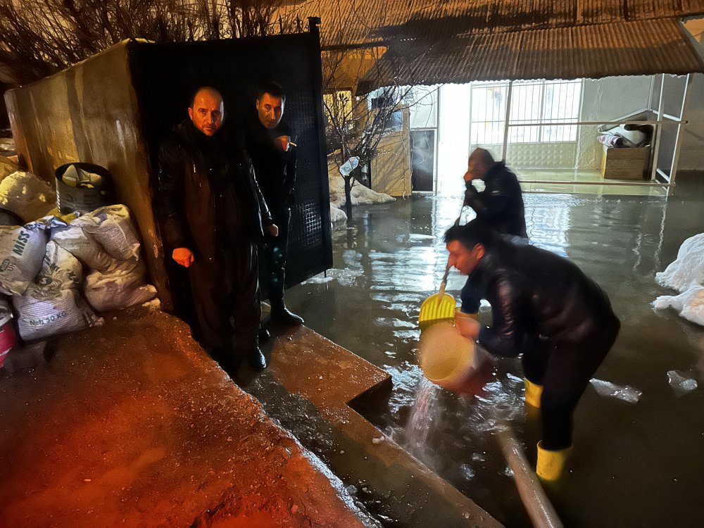 Ailenin durumunu gören komşuları çağırdıkları vidanjörle suları tahliye etmeye çalıştı.