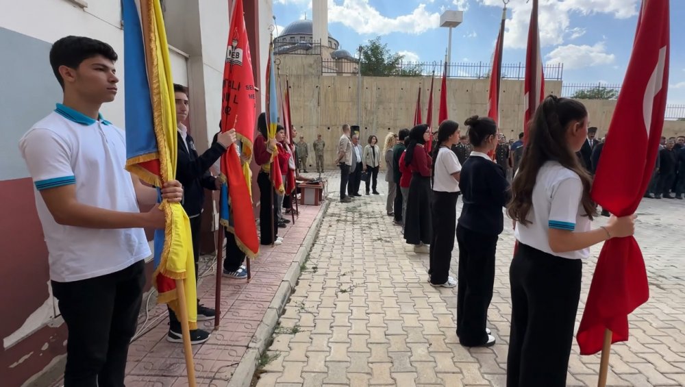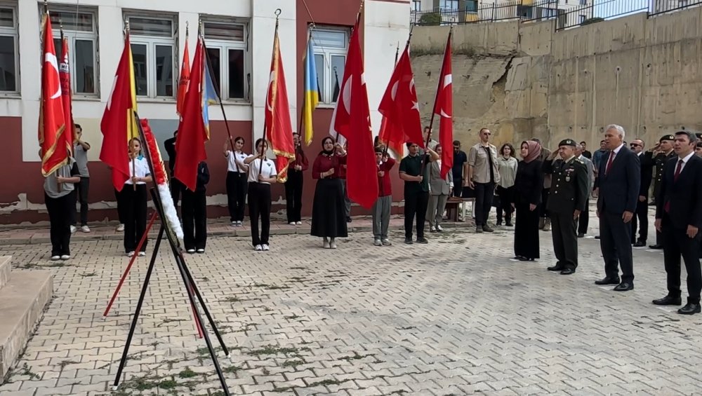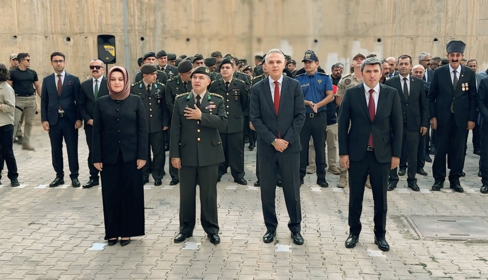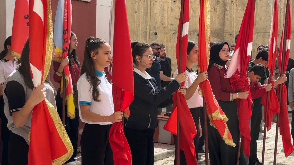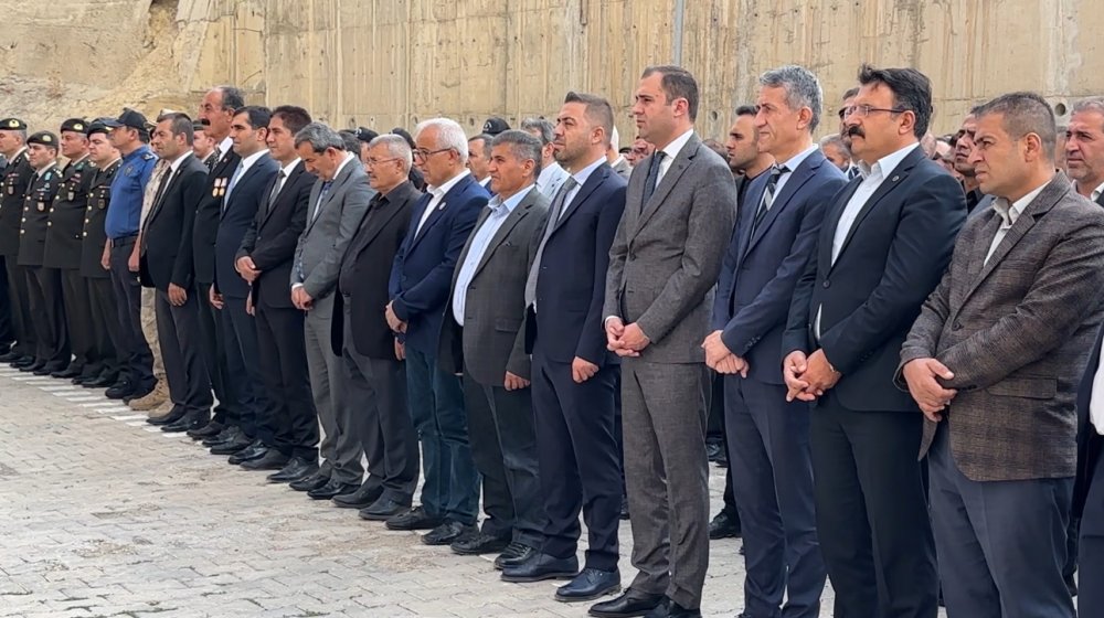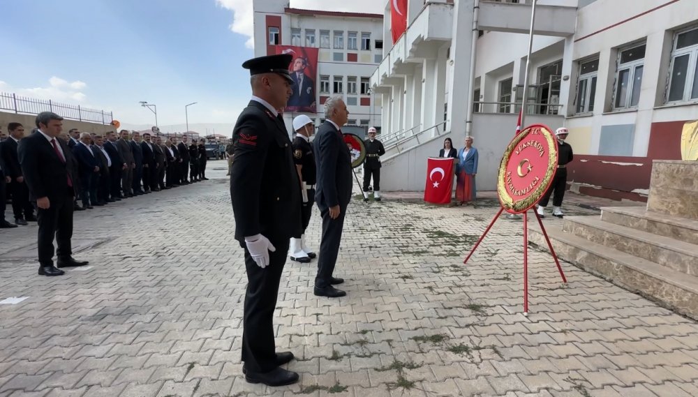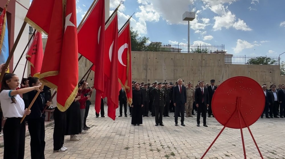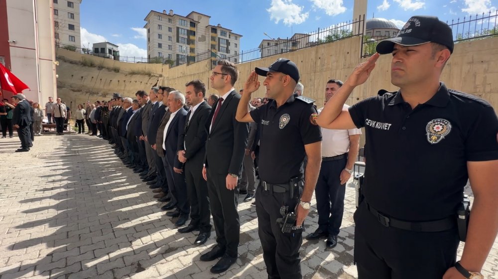 Esenyurt Mahallesi'nde yer alan Hükümet Konağı önünde gerçekleşen program, saygı duruşu ve İstiklal Marşı'nın okunmasıyla başladı.