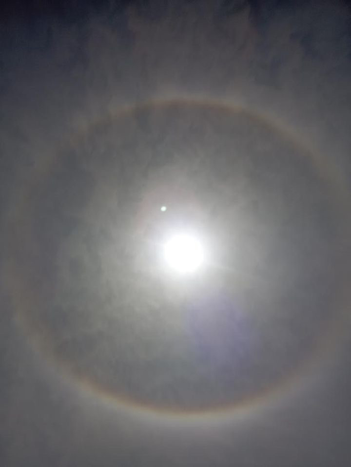 İlçede bazı vatandaşlar büyük bir merakla ellerine telefonlarını alarak Güneş halesini görüntüledi.