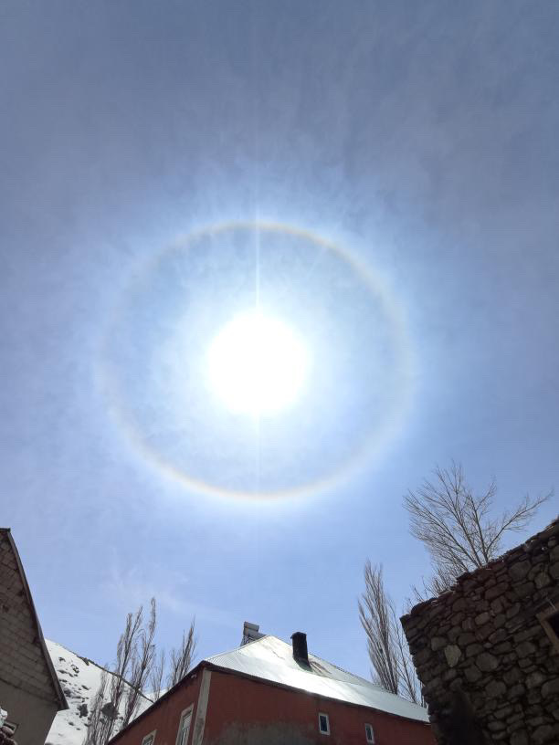 Hakkari’nin Yüksekova ilçesinde Güneş, etrafındaki çemberle muhteşem bir görüntü oluşturdu.