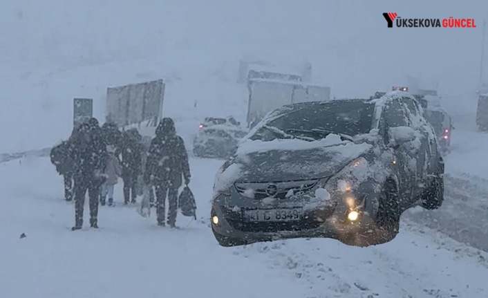 Yüksekova ilçesinde yoğun kar yağışı hayatı durma noktasına getirirken yokuşu çıkmayan çok sayıda araç mahsur kaldı. Vatandaşlar araçlarını park ederek evlerine yürüyerek gitti.