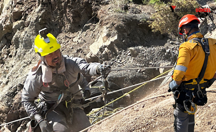 Metin, “ Heyelanın arkasındaki taşlara ulaşmak için uyguladığımız yöntem Uluslararası sertifikalara dayanıyor. Buradaki dağcıların hepsi bu sertifikaya sahip. Çalışmaları çift ip sistemi şeklinde yapıyoruz. İpimizin biri koptuğunda diğer ip bizi hayatta tutuyor. 150 metrelik alanda çalışma yürütüyoruz. Şuan müdahale ettiğimiz alan ise 80 metreliktir. İstasyonlarımız yukarda olduğu için 100 metrelik iplerle aşağı iniyoruz. Adam başı 200 metre ip taşıyoruz. İplerimiz torbalarda bacağımızın arasında taşıyoruz ki düşürdüğümüz taşlar ipe zarar vermesin. Yaklaşık 2 bin rakımdayız. Yüksekova’ya da 30 kilometre uzaklıkta bulunmaktayız” İfadelerini kullandı.