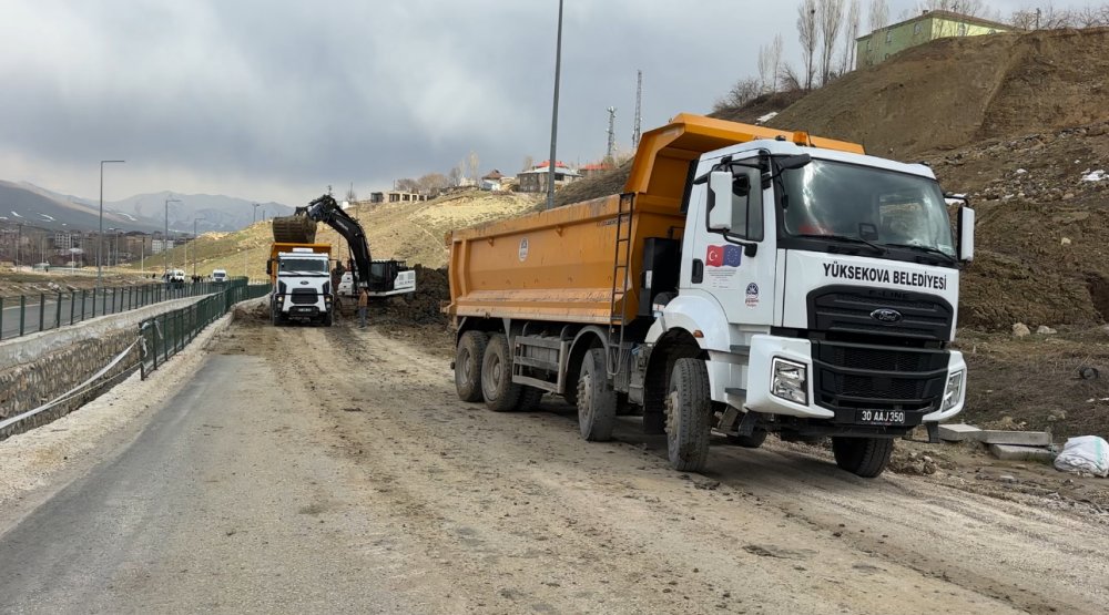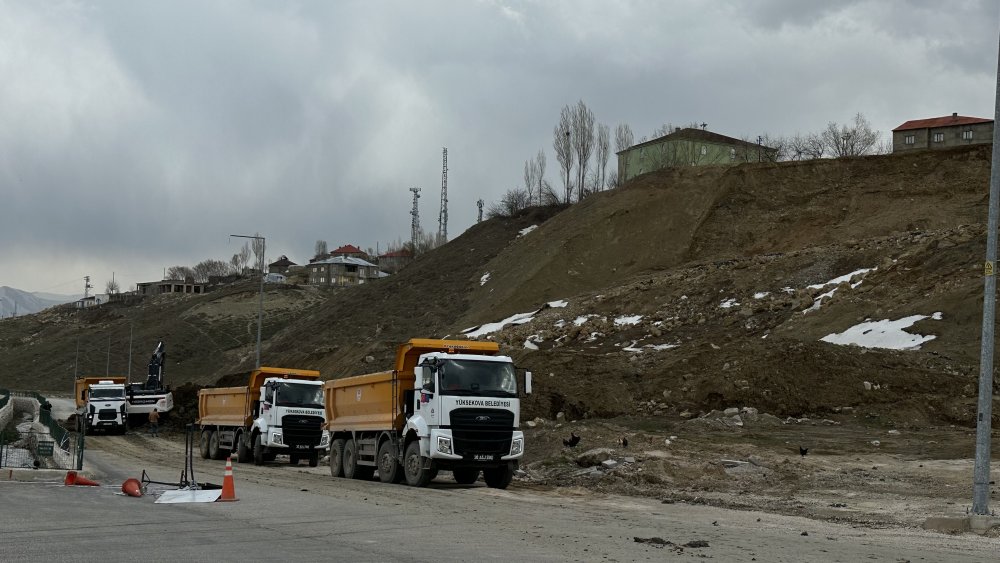 Yüksekova ilçesinde etkili olan yağışlar sonucu meydana gelen heyelan nedeniyle 20 gündür tek şeritten sağlanan ulaşımın normale dönmesi için ekiplerin başlattığı çalışmalar aralıksız devam ediyor.