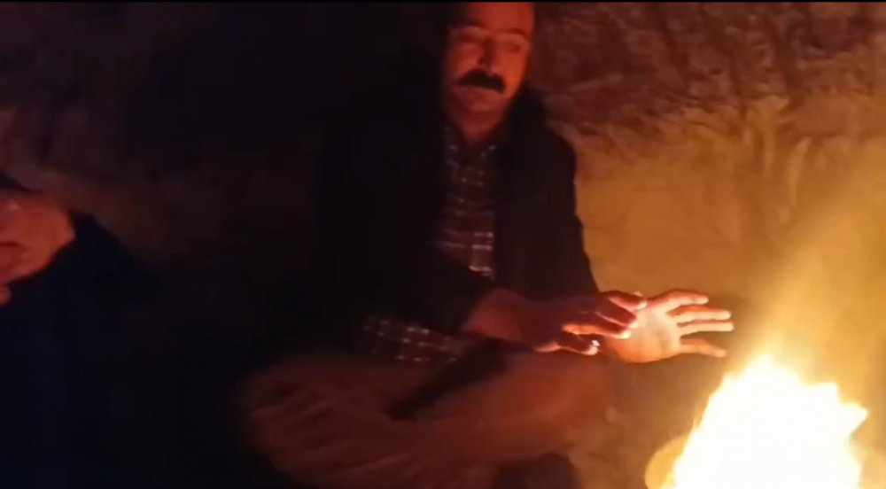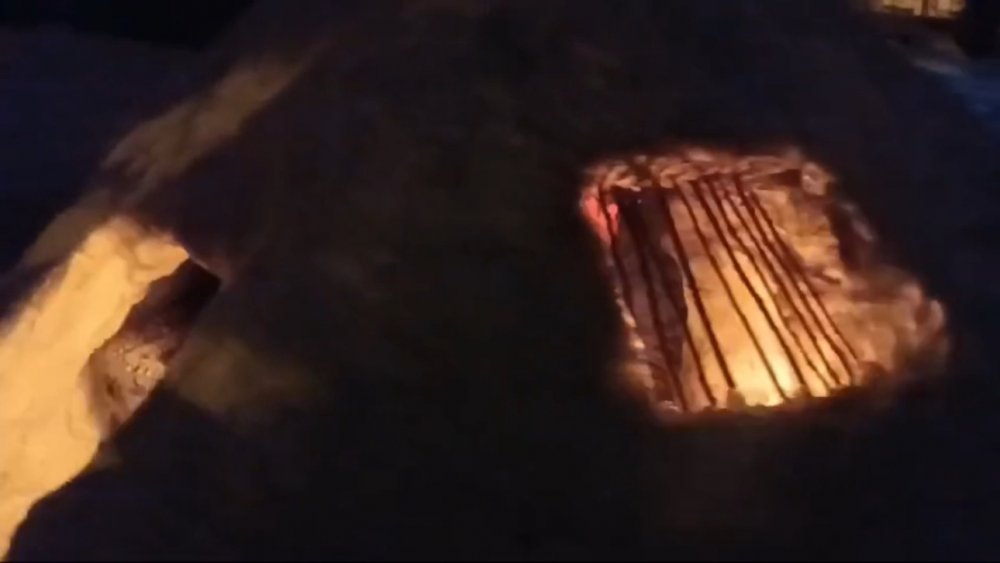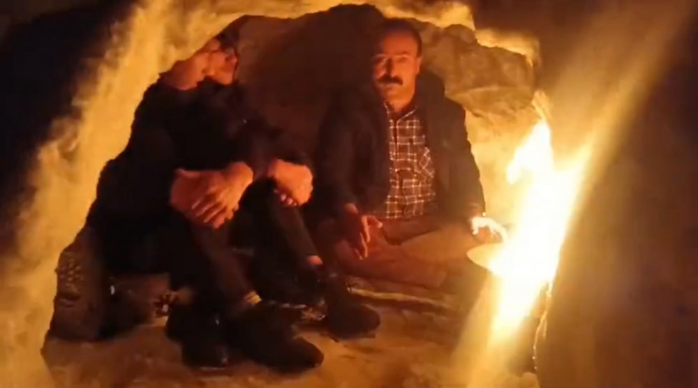 Yüksekova ilçesinde bir grup genç, kardan ev yapıp içinde ateş yaktı.