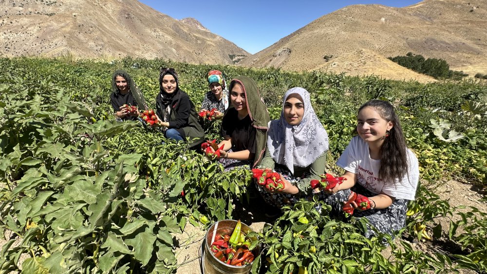 Yüksekova ilçesinde kadın çiftçiler büyük zahmetlerle ilkbaharda ekimi yaptıkları Kapya biberin hasadına başladılar.