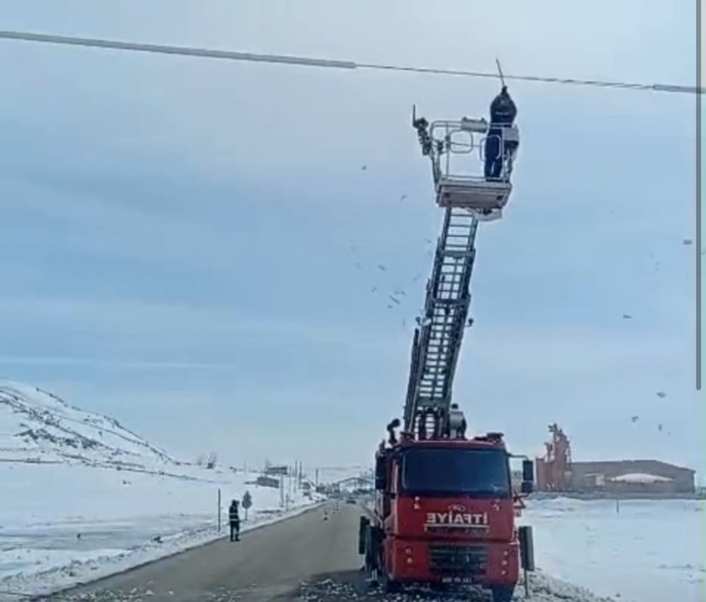 Hava sıcaklığının sıfırın altına düşmesiyle elektrik iletim hatlarında meydana gelen buzlanma, enerji kesintisi ve hat kopma riskini beraberinde getirdi. İtfaiye ekipleri, merdivenli araçlarla Vangölü Elektrik Dağıtım A.Ş. (VEDAŞ) personeline teknik destek vererek hatlardaki buzların kontrollü şekilde kırılmasını sağladı.