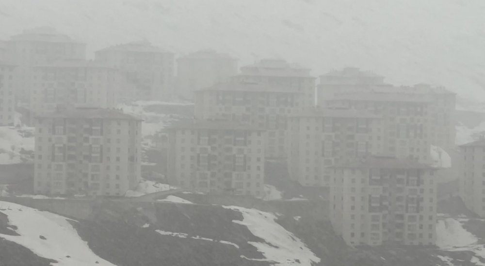 Meteoroloji Genel Müdürlüğünün uyarılarının ardından başlayan kar yağışı, kısa sürede ilçeyi beyaza bürürken, yoğun sis nedeniyle görüş mesafesi yer yer 20 metreye kadar düştü.