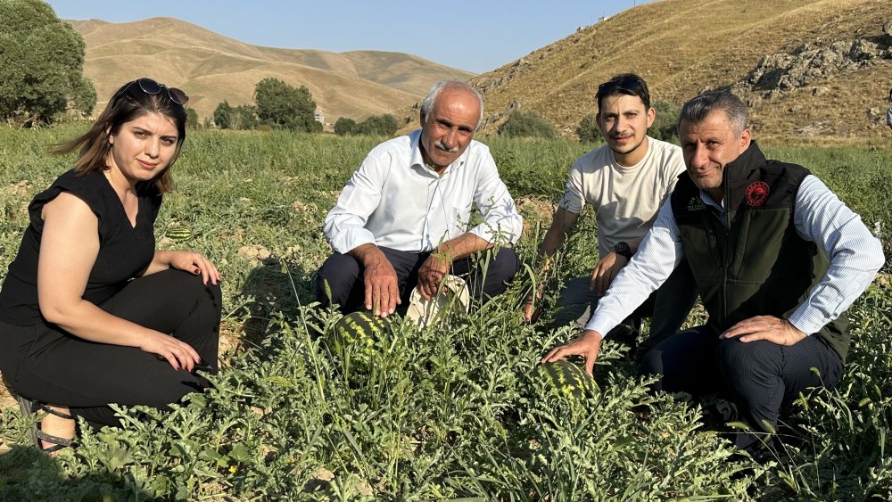 Karpuz tarlasında inceleme yapan Yüksekova İlçe Tarım ve Orman Müdürü Mehmet Emin Yiğit, karpuzların güzel şekilde yetiştiğini ve iyi verim alınacağını belirtti.