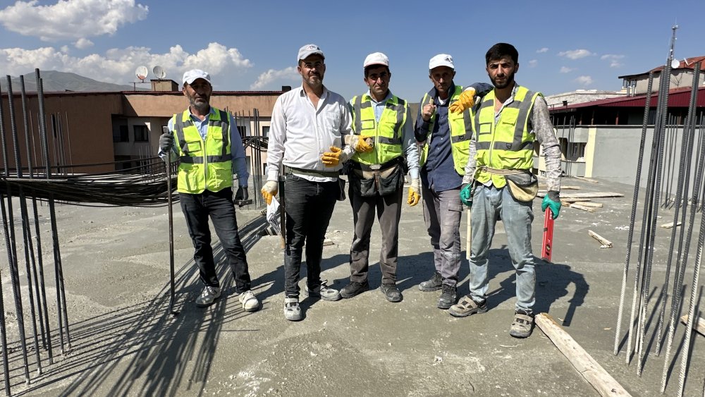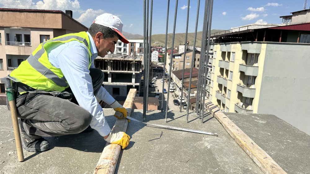 Yüksekova ilçesinde havaların ısınmasıyla birlikte başlayan inşaat sezonu, 30 derece sıcaklığa rağmen devam ediyor.