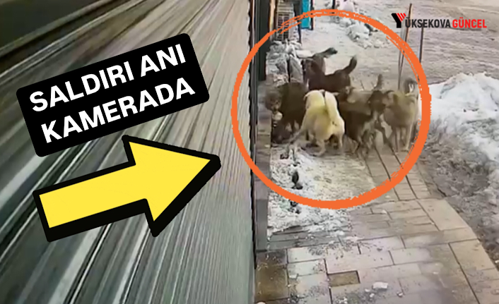 Yüksekova ilçesinde yiyecek bulamayınca yerleşim merkezine inen kurda köpekler saldırdı. O anlar ise saniye saniye kameralara yansıdı.