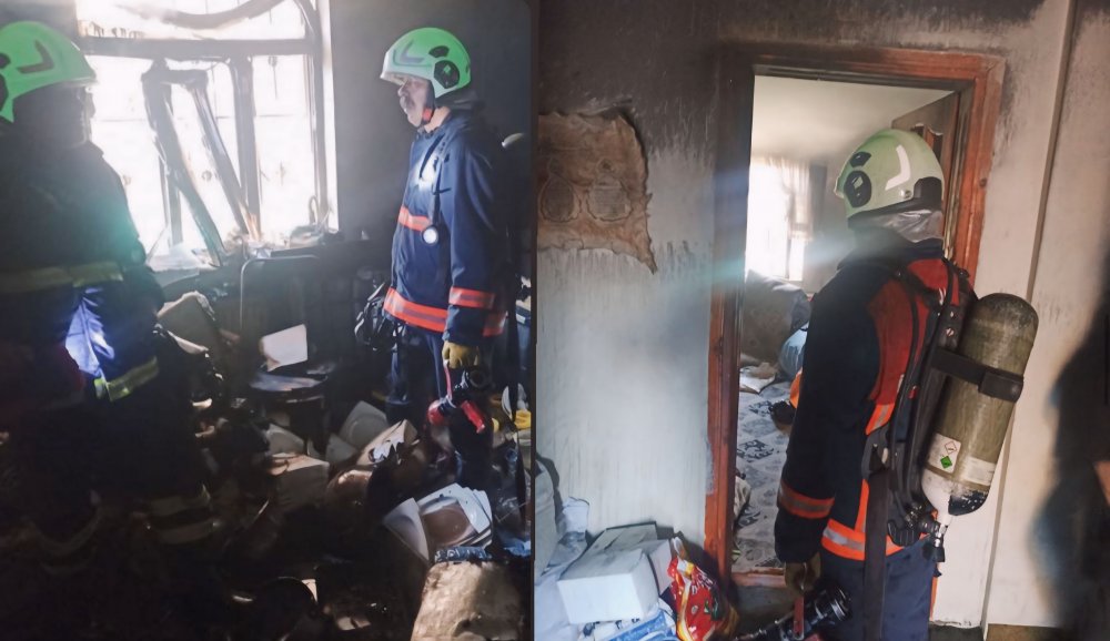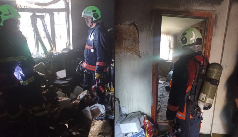 Yangında dairede yaşayan aile, yoğun duman nedeniyle içeride mahsur kaldı.