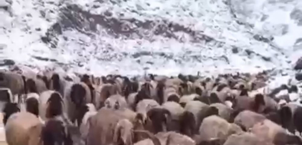 Hakkari’nin Yüksekova ilçesinde aniden bastıran kar yağışı hayatı olumsuz etkilerken, meraya çıkartılan koyun sürüsü ise yeniden ağıllara getirildi.