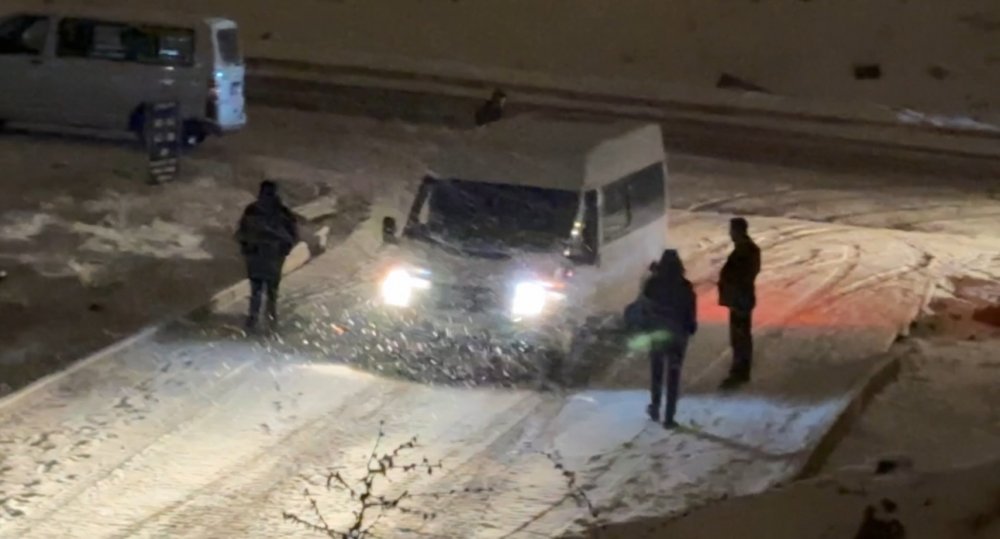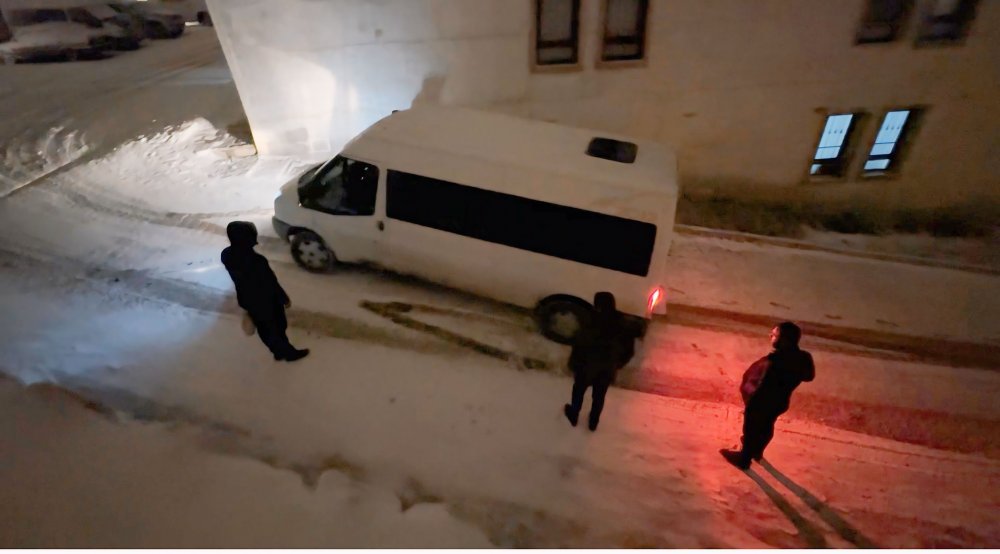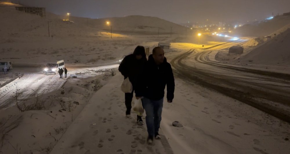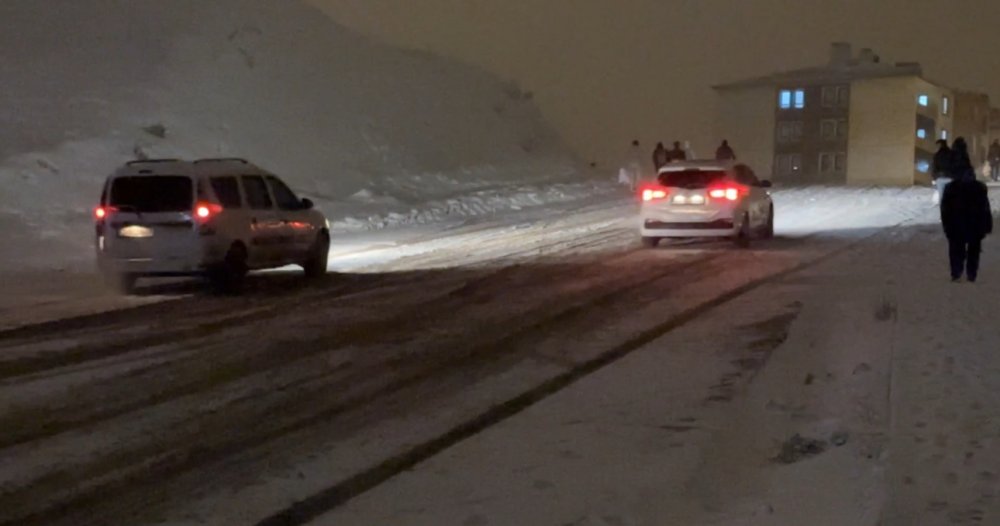 Yokuşlu yolu çıkamayan bazı araçlar sürücüleri, araçlarını güvenli yerlere park ederek yürüyerek evlerine gitti.