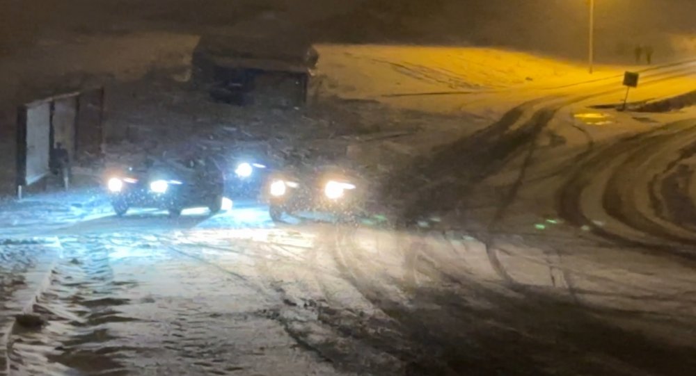 Meteorolojinin uyarılarının ardından ilçede akşam saatlerinde yoğun kar yağışı etkili oldu.