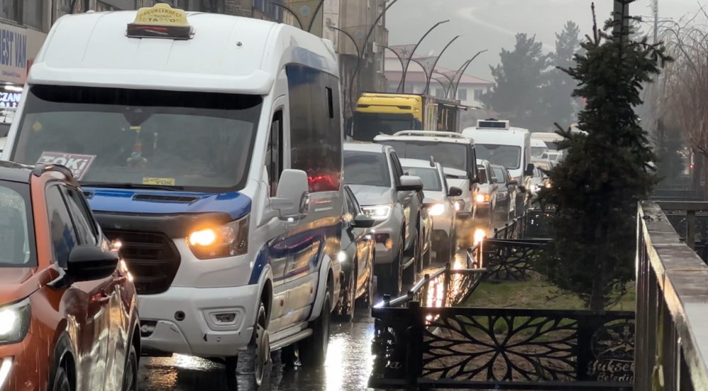 Yüksekova ilçesinde sağanak yağış etkili olurken, hava sıcaklığı da düştü.
