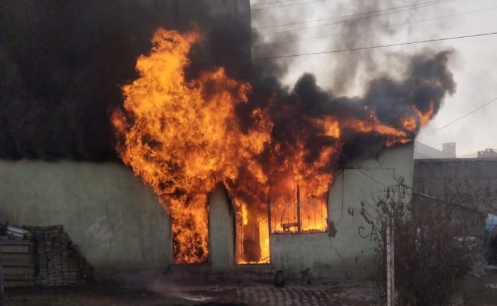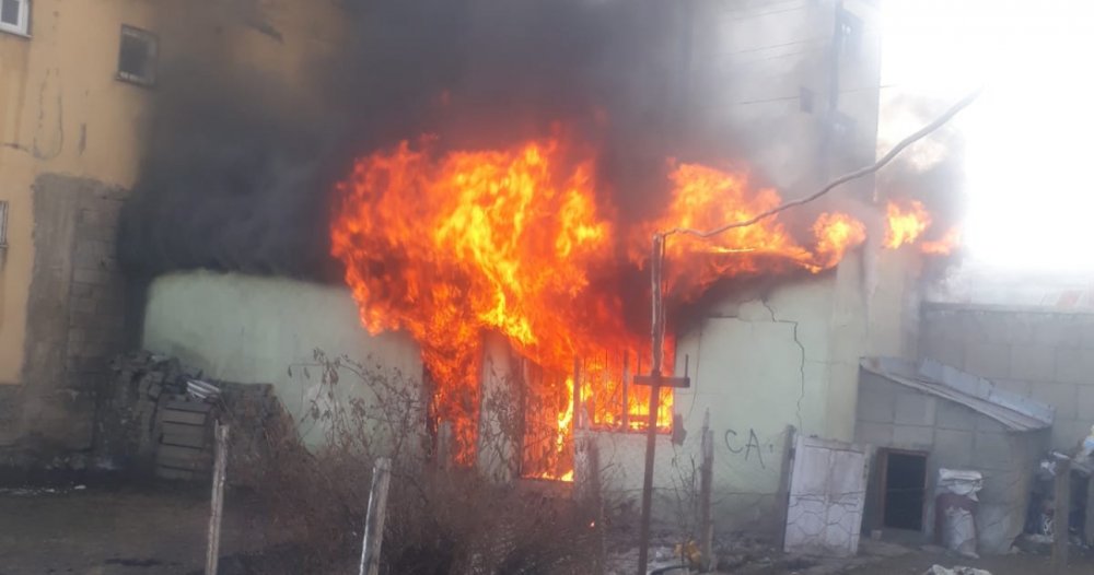 Tandır evine ve odunluğa ait olan, henüz nedeni bilinmeyen yangın hızla büyüdü ve alevler her yeri sardı.