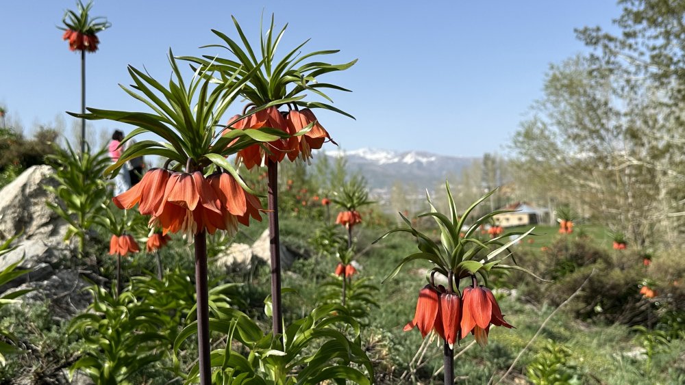 Yüksekova ilçesinde çiçek açan ters laleler görenleri kendine hayran bırakıyor.