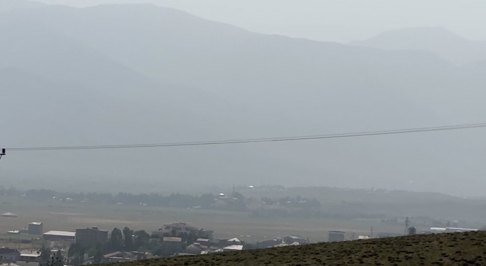 Yüksekova ilçesinde oluşan çöl tozu hayatı olumsuz etkilerken, ilçenin dağları içinde kayboldu.