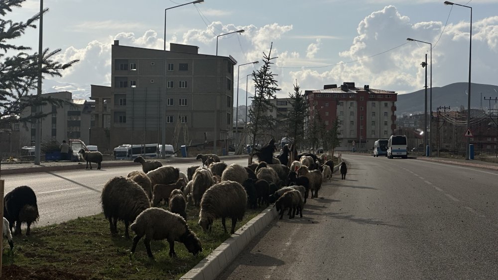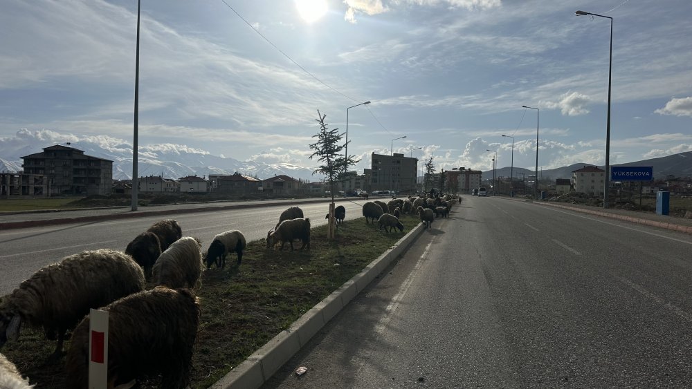 Yüksekova ilçesinde, Şemdinli yolu üzerinde seyir halinde olan sürücüler, bugün alışılmışın dışında bir "trafik yoğunluğu" ile karşılaştı. Gün boyu taze otlaklarda yayılan ve akşamüstü meradan dönen kalabalık bir koyun sürüsü, karayolunu adeta podyuma çevirerek trafiğin akışını doğanın ritmine bıraktı.