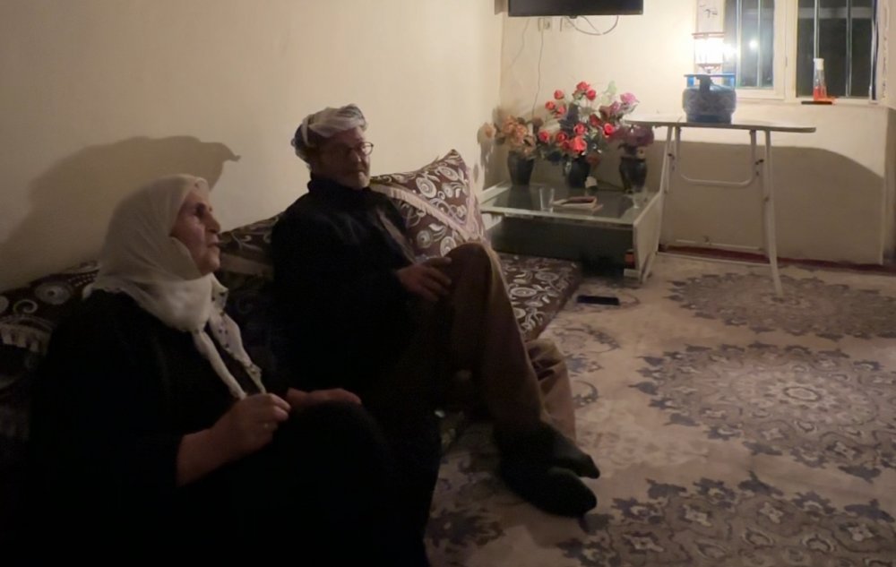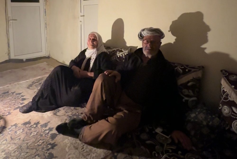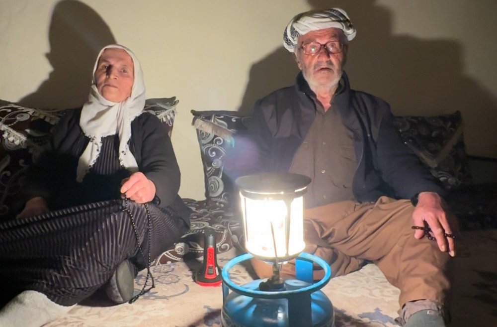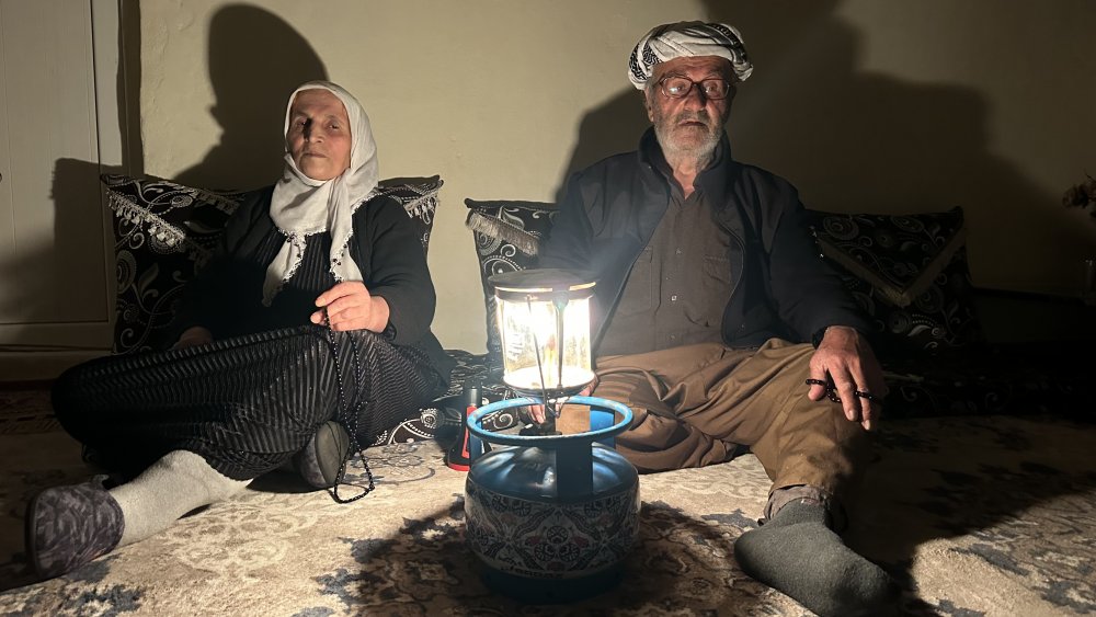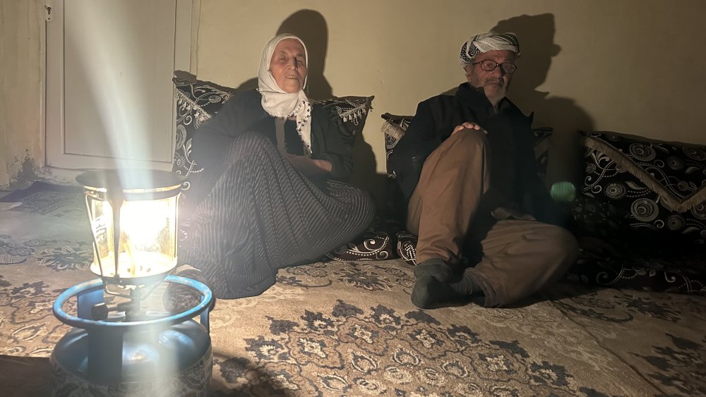 Titreyen elleriyle lambayı yakan Fehime teyze ve İdris amca, geceyi bu cılız ışığın etrafında birbirlerine tutunarak geçiriyor.