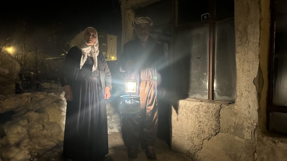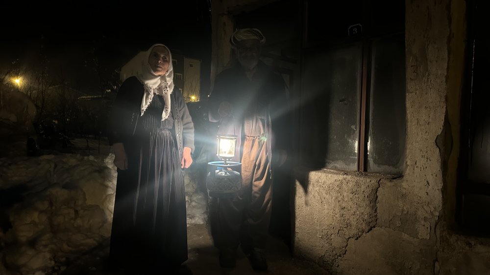 Pazartesi sabahı saat 09.00’da şalterlerin indirilmesiyle evleri buz kesen yaşlı çiftin tek sığınağı, eskiden kalan bir löküz lambası oldu.