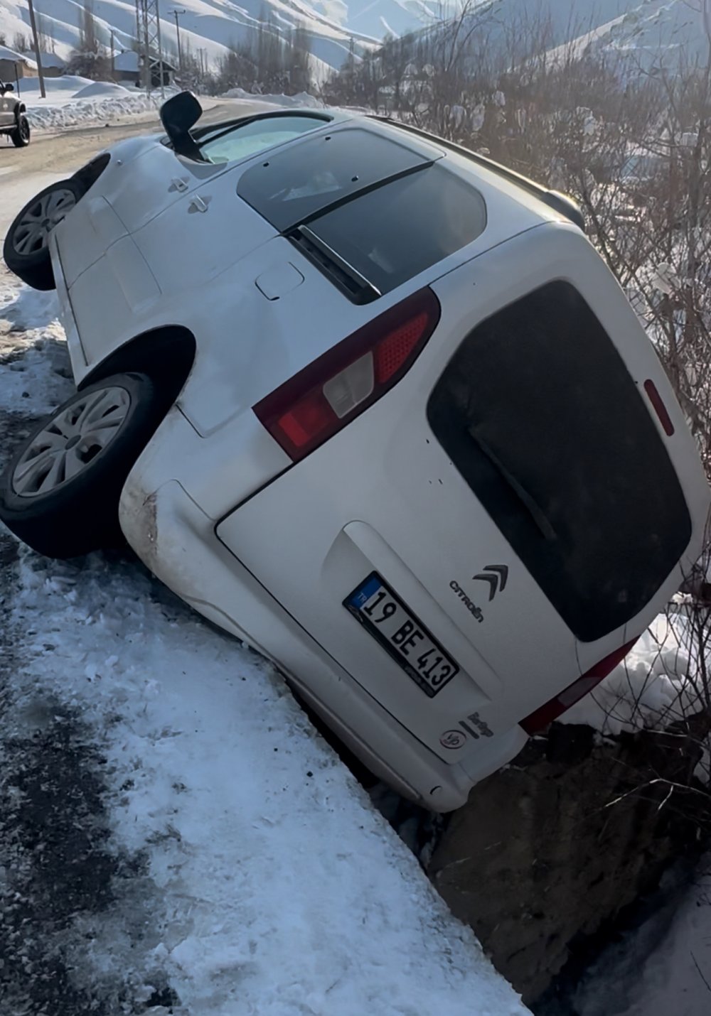 Öğle saatlerinde Mustafa Düzen denetiminde olan 19 BE 413 plakalı araç gizli buzlanmadan dolayı yolda bulunan köprüden düştü.