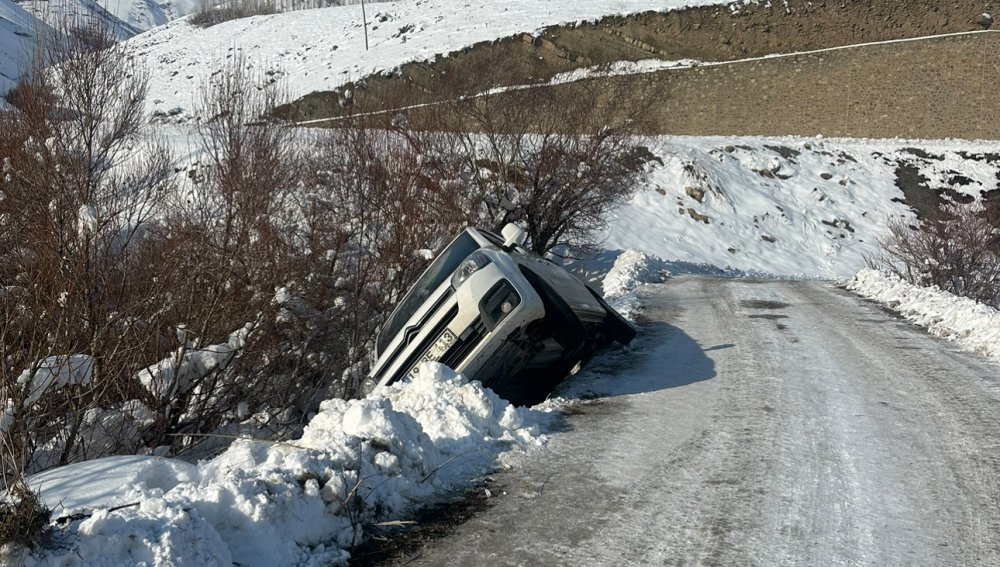Yüksekova ilçesinde doğa gözlemcisi ve gezgin öğretmen olarak tanınan Ümit Bartın Esendere Beldesi Güvenli Köyü'nü gezmeye giderken yol güzergahında bulunan köprüden düşen aracı kayıt altına aldı.