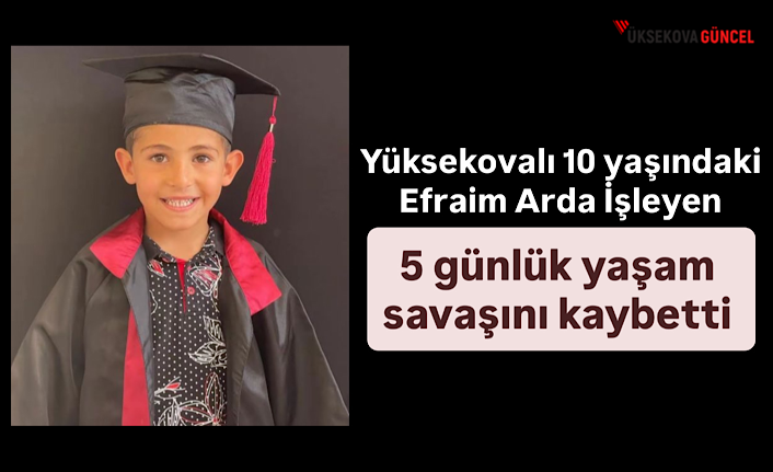 Yüksekova ilçesinde 3. sınıf öğrencisi olan 10 yaşındaki Efraim Arda İşleyen, 5 gün önce aniden rahatsızlanarak hastaneye kaldırıldı. Genç yaşta yaşam mücadelesi veren küçük Efraim'den acı haber geldi.