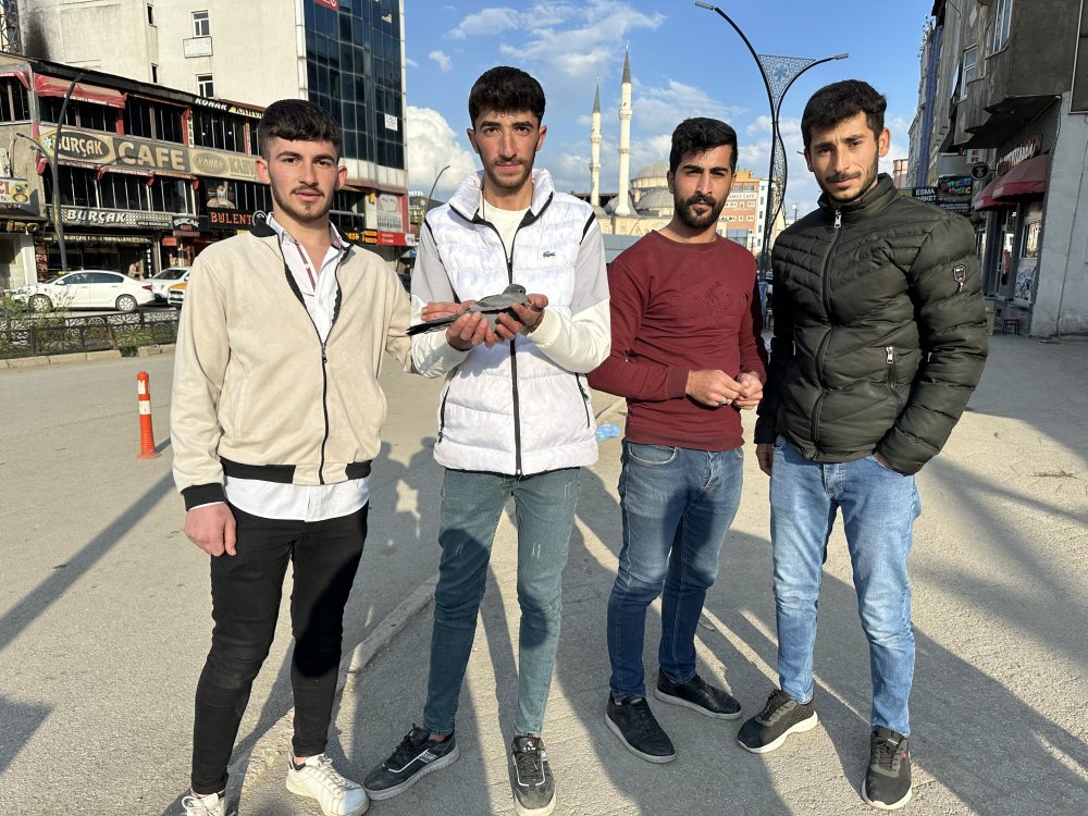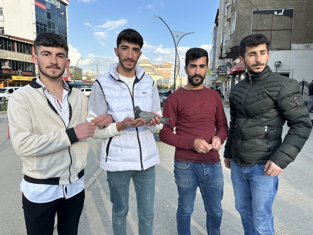 Cengiz Topel Caddesi üzerinde akşam saatlerinde gezen bir grup genç, yol ortasında yaralı bir güvercin buldu.