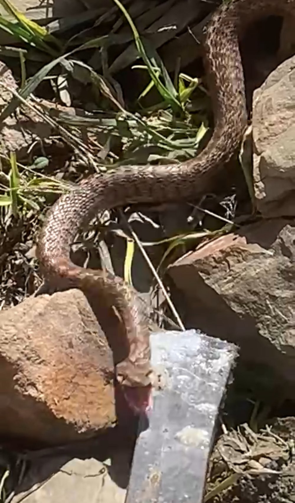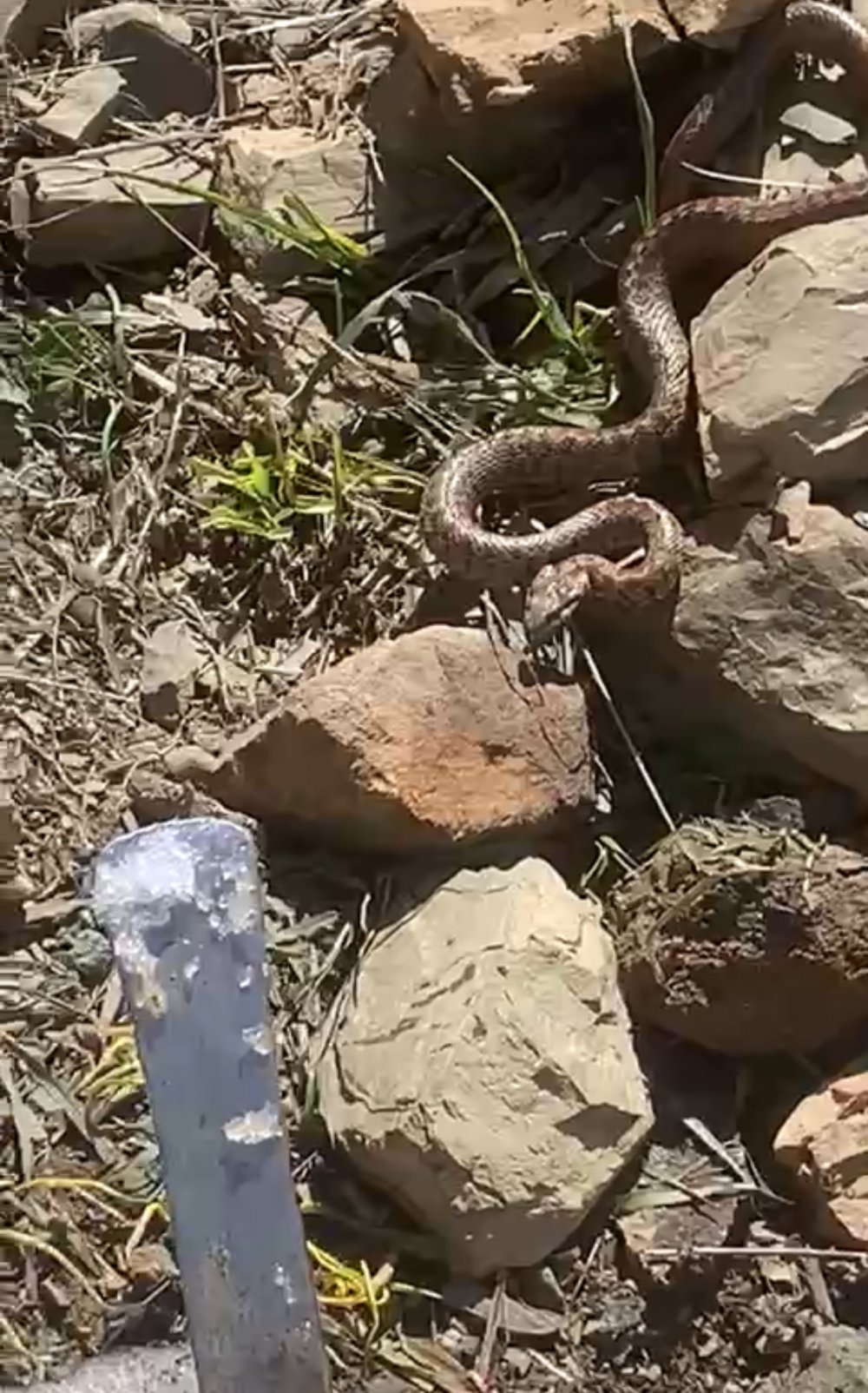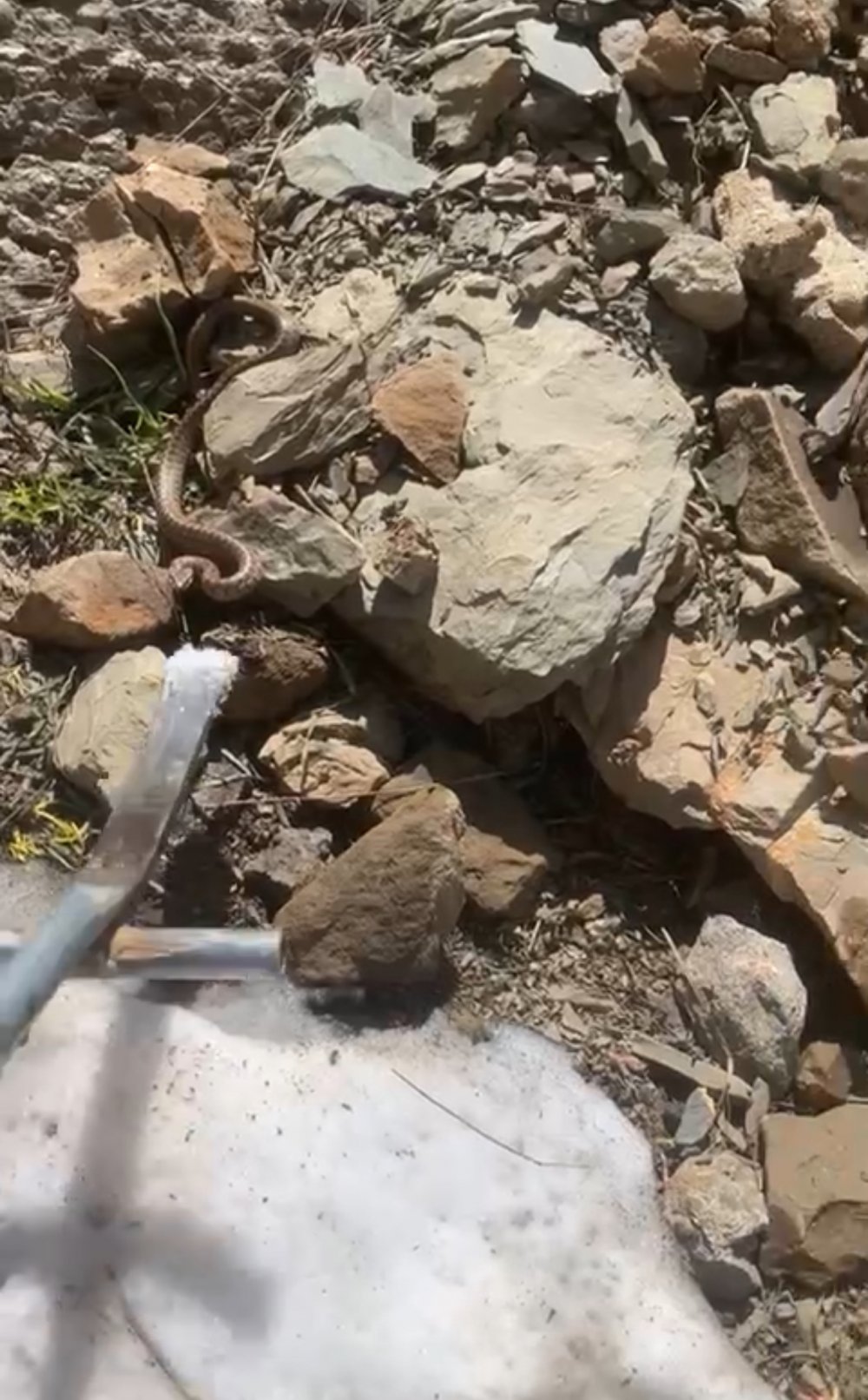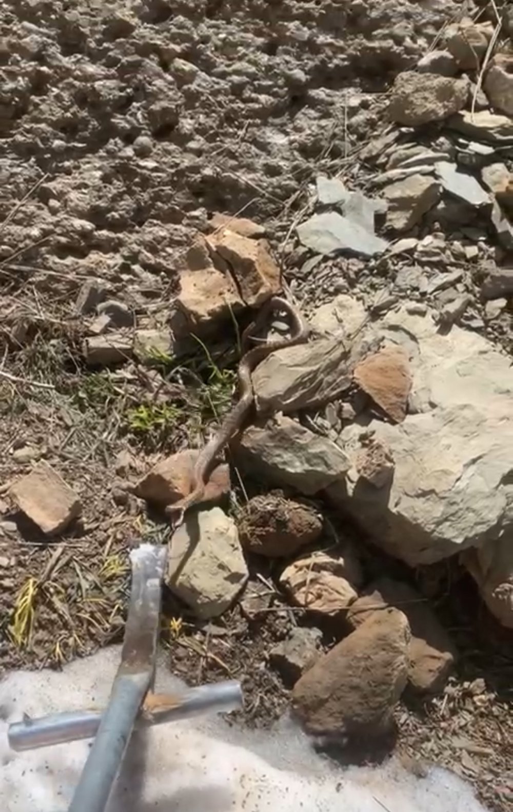 Havaların ısınmasıyla birlikte bölgede yılanların çok olduğunu belirten Giravi Sudaş, “Bizler de bağ ve bahçemize bakmak için yaz mevsiminde köyümüze geliyoruz. Köyde gezdiğim sırada engerek türü yılan karşıma çıktı. Ben de ona zarar vermeden elimdeki demirle uzaklaştırdım. Bir süre sonra gözden kayboldu” dedi.