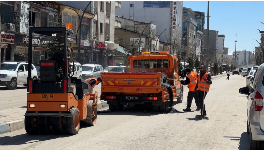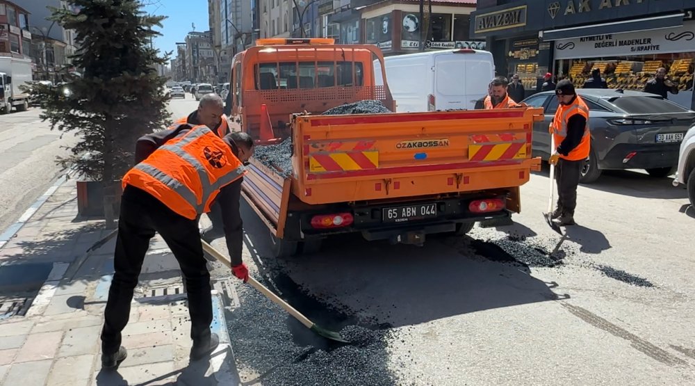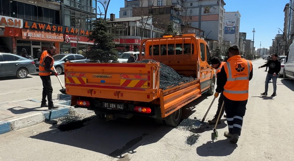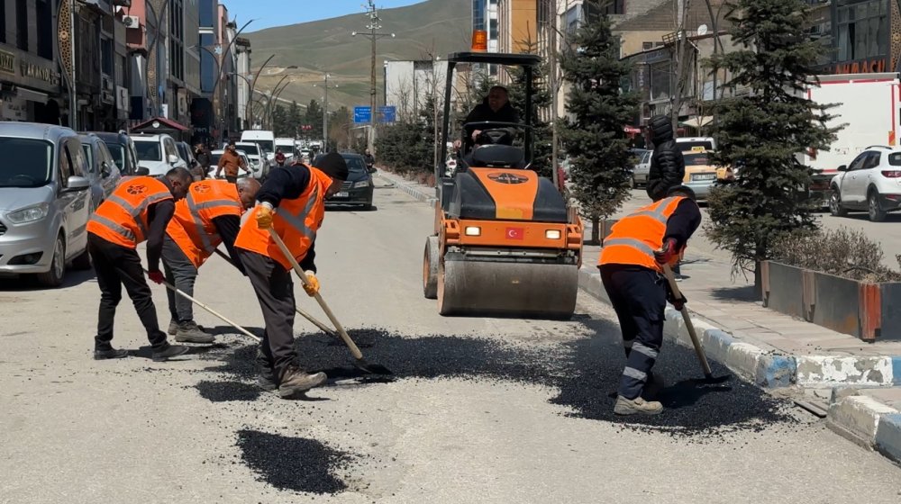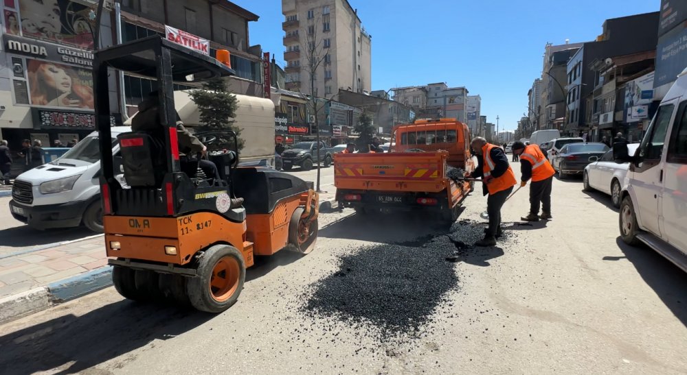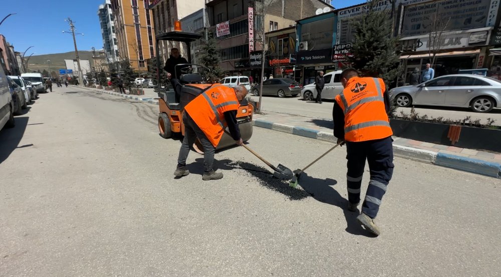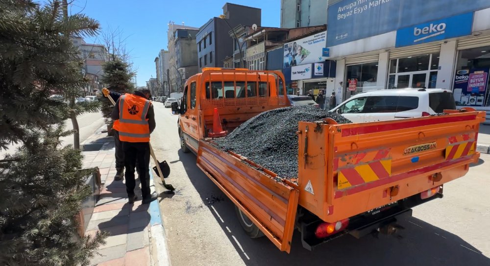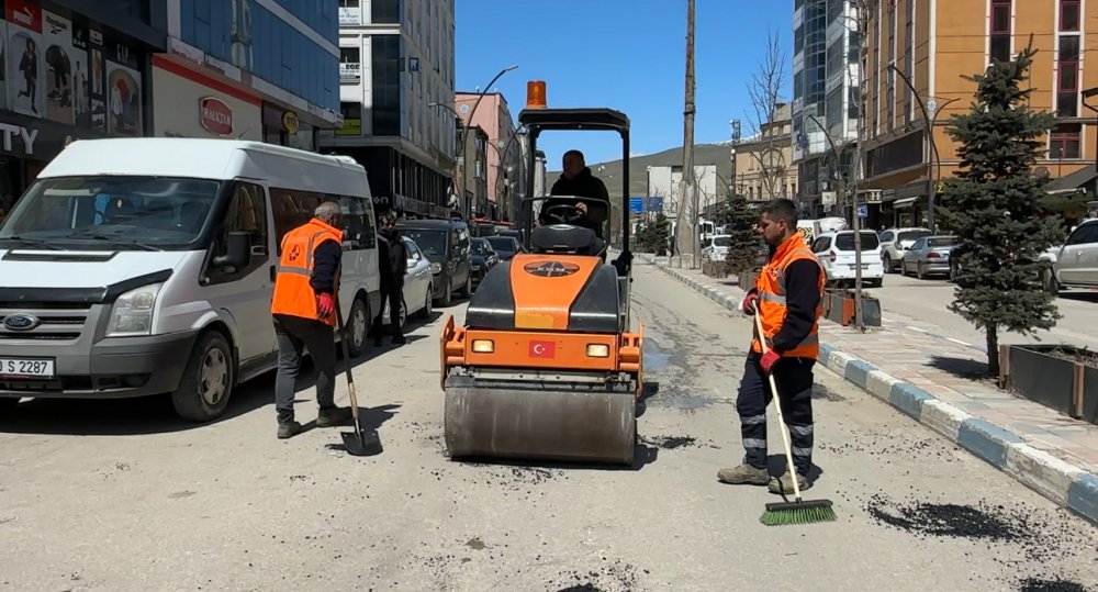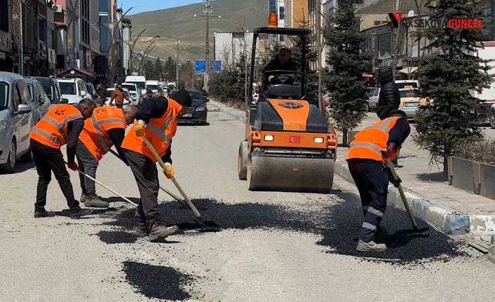 Ekipler, ana yolun iki tarafındaki çukurları sıcak asfalt ile doldurarak çalışmalarına başladı.