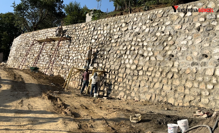 Yüksekova ilçesinin Irak sınırında bulunan Dağlıca (OREMAR) Köyün yolunda istinat duvarı çalışması devam ediyor.