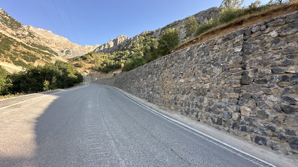 İlçeye 55 kilometre uzaklıkta yer alan Dağlıca köyün yolunda araçların daha rahat ve güvenir bir şekilde seyahat edilmesi için ekipler tarafından İstinat duvar çalışması devam ediyor.