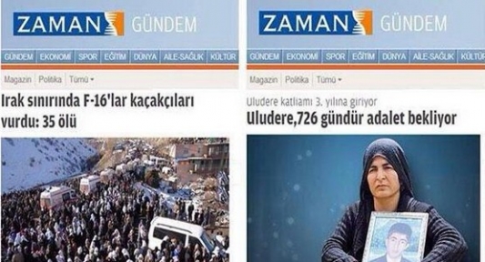 Zaman gazetesi Şırnak'ın Uludere ilçesinde 28 Aralık 2011 gecesi Türk savaş uçaklarınca düzenlenen operasyonda 34 kişinin hayatını kaybettiği Uludere katliamını"Irak sınırında F-16'lar kaçakçıları vurdu: 35 ölü" başlığıyla duyurmuştu.