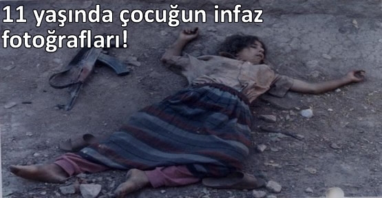 Yazı yayına hazır ama yeni bir fotoğraf geliyor elime. Küçük Fatma’nın diyorlar, savcılığın soruşturma dosyasının arasında çıkmış. Vücuduna saplanan kurşunlarla yere yığılmış, tüm masumiyetiyle yatmakta Fatma. Ana kucağında değil elbet, kanlar içerisinde yatmakta. Ve tıpkı otopsiyi yapan savcının tarif ettiği gibi;