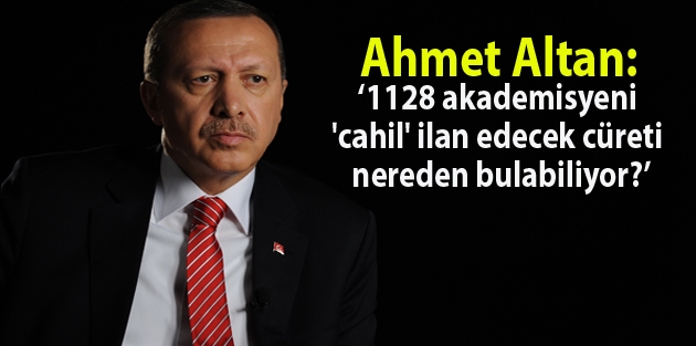 Haberdar yazarı Ahmet Altan, Cumhurbaşkanı Tayyip Erdoğan'ın Güneydoğu'da yaşanan sokağa çıkma yasakları ve çatışma ortamı neticesinde yaşanan hak ihlallerine ilişkin imza kampanyası düzenleyerek, “Bu suça ortak olmayacağız” diyen Barış İçin Akademisyenler inisiyatifiyle bir araya gelen 1128 akademisyene yönelik "Ey aydın müsveddeleri, sizler karanlık ve cahilsiniz" sözlerine tepki gösterdi. "Erdoğan haddini bilmiyor" diyen Altan, "Bir cumhurbaşkanı, binden fazla akademisyeni 'cahil' ilan edecek cüreti nereden bulabiliyor? Cumhurbaşkanı’nın bu şaşırtıcı cüretinin açıkça görülebilen bir tek nedeni var. Korkutabileceğine inanması" ifadesini kullandı.