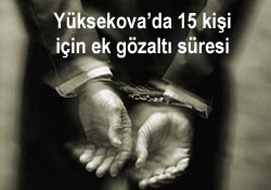 Yüksekova"da dün sabah saatlerinde Yeşildere, Esentepe, Güngür, Cumhuriyet, Orman mahallelerinde evlere yapılan polis baskınıyla gözaltına alınan 15 genç ve çocuk için ek gözaltı süresi alındı.