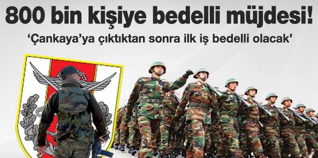 Bedelli Askerlik konusundaki ilk mesaj, halkın oyu ile Cumhurbaşkanı seçilen Recep Tayyip Erdoğan’dan gelmişti. Seçim sürecinde katıldığı televizyon yayınınlarında konuşan Erdoğan, “Bedelli askerlik noktasında bekleyen sayısının 800 bin civarında olduğu söyleniyor. Seçimlerden sonra atılması gereken adımları atar, Genelkurmay Başkanımız, Savunma Bakanımızla gerekli görüşmeler sonunda bir neticeye varırız” demişti. Bedelli askerlikle ilgili düzenlemenin Erdoğan’ın da talimatları doğrultusunda olgunlaştırılarak, Ekim ayında başlayacak yeni yasama yılında TBMM’ye sevk edilmesi bekleniyor.