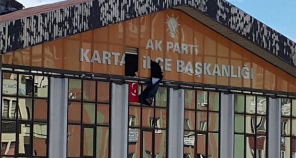 Kartal, Üsküdar Caddesi'nde AK Parti Kartal İlçe teşkilatı binasına giren silahlı iki kişi binayı işgal etti. Binadakileri dışarı çıkaran şahıslar, 7 katlı binanın en üst katındaki iki pencere camını kırdı ve üzerinde kılıç motifinin de olduğu bir Türk Bayrağı astı. Olay yerine sevk edilen çok sayıda polis çevre güvenliği aldı. Olay yerinde bir ambulans da hazır bekletiliyor. Eylemcilerden biri zaman zaman cama çıkarak kalabalığa doğru konuşma yapıyor. Dha