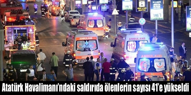 İstanbul Valiliği, Atatürk Havalimanı’nda meydana gelen saldırıda ölenlerin sayısının 41’e yükseldiğini, yaralanan 130 kişinin de tedavilerine devam edildiğini açıkladı.