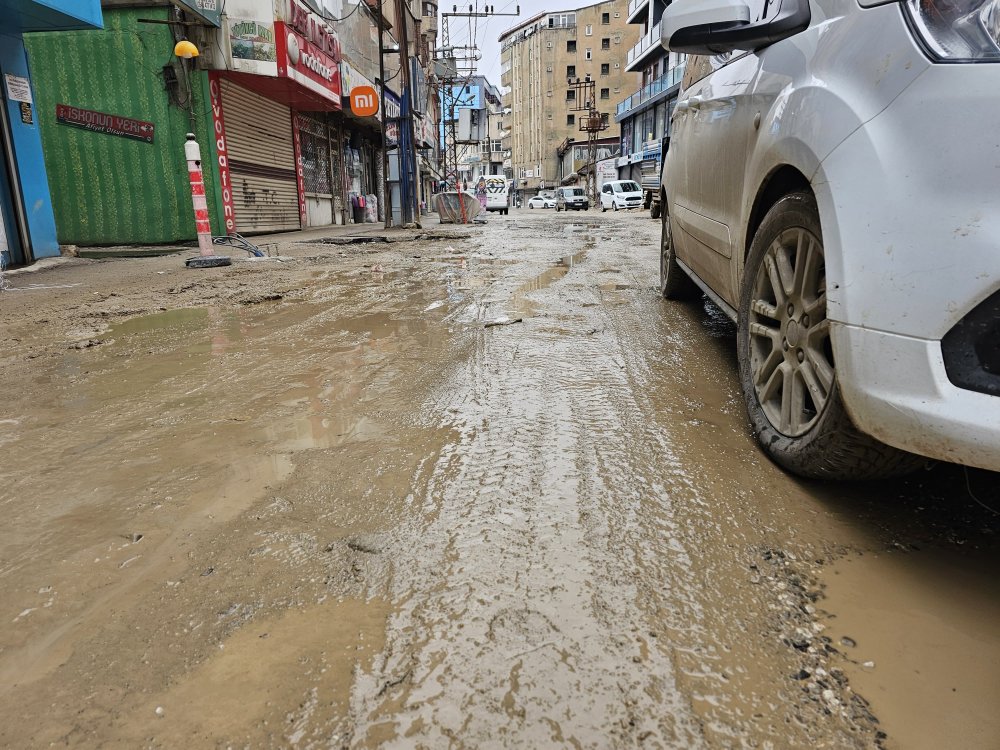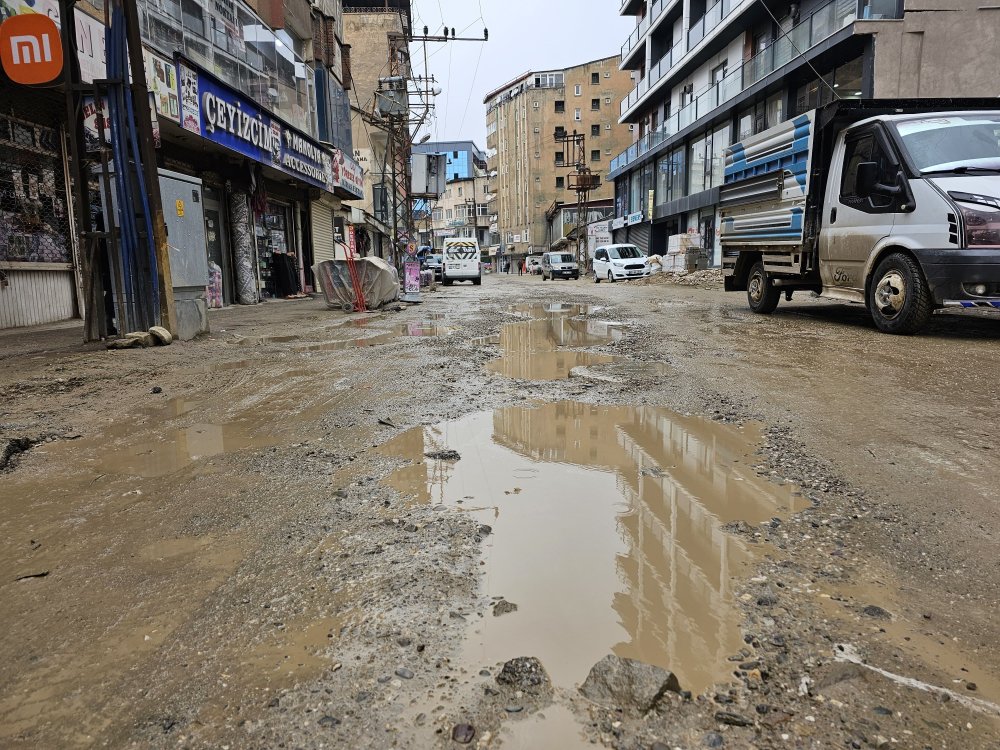 Yüksekova ilçesinde yağışlar sonrası köstebek yuvasına ve çamur deryasına dönen yollar tepkilere neden oldu.