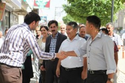 Van'ın Özalp ve Saray ilçelerinde aralarında BDP Van Milletvekili Nazmi Gür, BDP Van İl Eş Başkanı Figen Yaşar, Van Büyükşehir Belediye Başkanı Bekir Kaya, Özalp Belediye Başkanı Murat Durmaz'ın da olduğu BDP'li heyet, esnafları ziyaret ederek, sorunlarını dinledi.