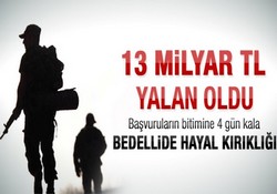 Hazinenin önemli miktarda gelir beklediği bedelli askerlik, umulanı vermedi. 15 Aralık 2011 tarihinden bu yana yürürlükte olan yasa, 460 bin kişiden elde edilecek 13 milyarlık bir gelir büyüklüğüne sahipti. Hükümet yasadan yararlanacak kişi sayısını en az 100 bin olarak hedeflemişti. Başvurular ise 45 bin 500 kişide kaldı. 15 Haziran'da sona erecek başvurularda en fazla 1,5 milyar lira gelir elde edilebilecek.