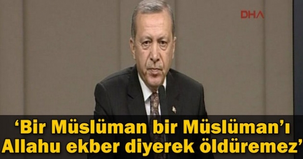 Başbakan Erdoğan, "Bir Müslüman, bir Müslüman'ı 'Allahu ekber' diyerek öldüremez" dedi.