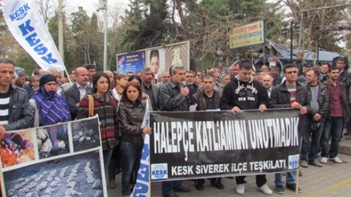 KESK Ağrı Şubeler Platformu, İHD, AKYAD ve Ağrı Barosu, Halepçe katliamını Kütüphane Caddesinden Öğretmevi'ne düzenlediği yürüyüşü kınadı.