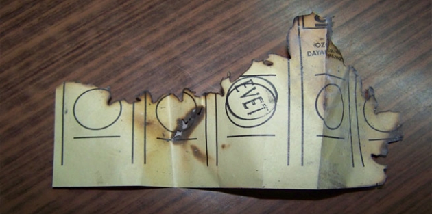 "Oylama tamamlandıktan sonra sayım işlemine geçildi. Belediye başkanlığı ve belediye meclis üyeliği sandık sayımı sırasında içeride çıkan arbede nedeniyle sandıkların hepsi tekmelerle ve kaldırılıp yere vurularak dağıtıldı. Bu olayların vuku bulduğu saat 21.50'ydi."