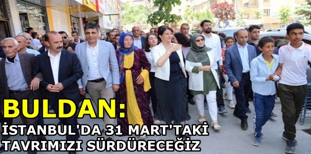 23 HAZİRAN’DA YENİ BİR DERS VERECEĞİZ: Şimdi ders vereceğimiz yeni bir tarih var önümüzde. 23 Haziran İstanbul seçimleri. Evet istanbul seçimleri bizler açısından önemli bir seçimdir. Şırnak Belediyesi’ni gasp edenlere ders vermek, Şemdinli, Çukurca, Uludere’yi elimizden zorla alan, gasp eden anlayışa ders vermek için şimdi 23 Haziran’ı dört gözle bekliyoruz. Biz İstanbul’da AKP-MHP adayı kaybetsin, demokrasi güçleri kazansın diye 31 Mart’taki tavrımızı 23 Haziran’da da hayata geçireceğiz. Bütün milletvekillerimizle biz iki eşbaşkan başta olmak üzere partimizin bütün yönetici ve kadroları ile İstanbul’a çıkarma yapacağız. 23 Haziran’a kadar gece gündüz çalışacağız. Durmadan, uyumadan, yemeden, içmeden çalışacağız ki AKP’ye kaybettirelim. Tıkanan demokratik siyaset kanallarının yeniden açılması için 23 Haziran seçimleri önemlidir.