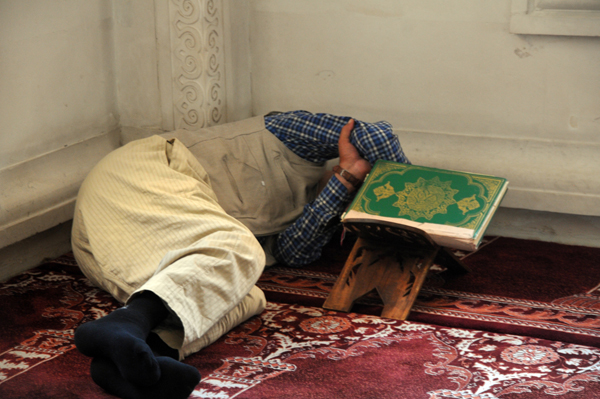 Hakkari'nin Yüksekova İlçesinde, oruç tutan vatandaşlar camilerde uyuyarak iftar vaktini bekliyor.